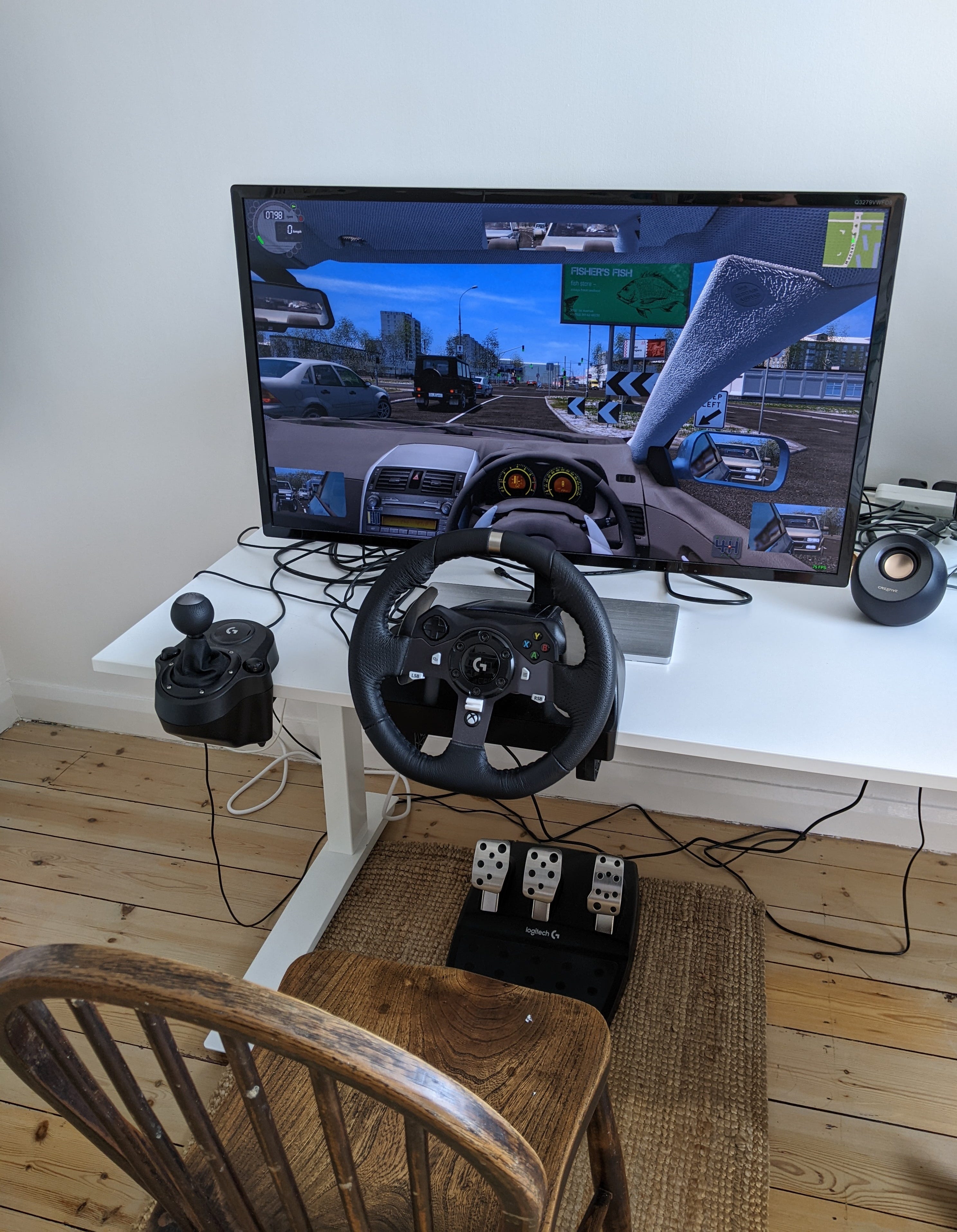 Not really. I paid £215 for my setup: the steering wheel and pedals were £180 (the Logitech G920), the gear shifter was £30 (also Logitech), and the simulator software (City Car Driving) was £5. I’ve added the details in this footnote: 4.